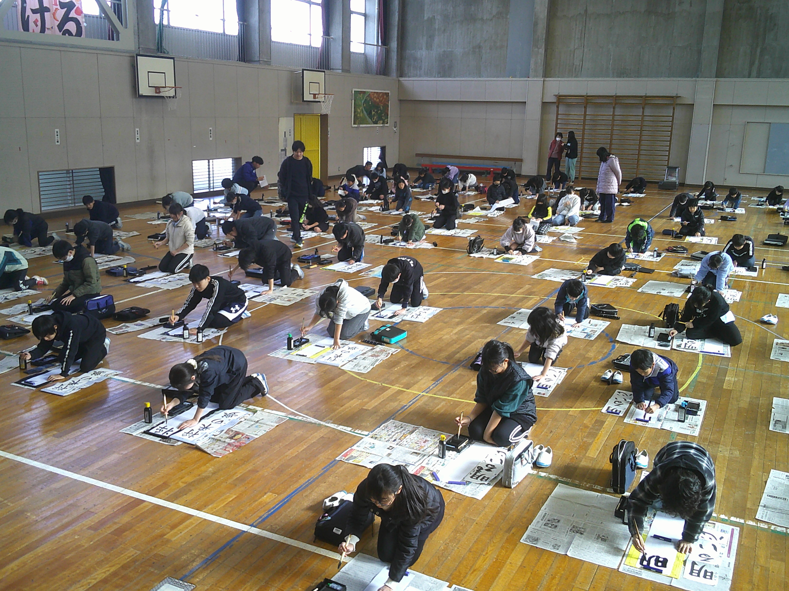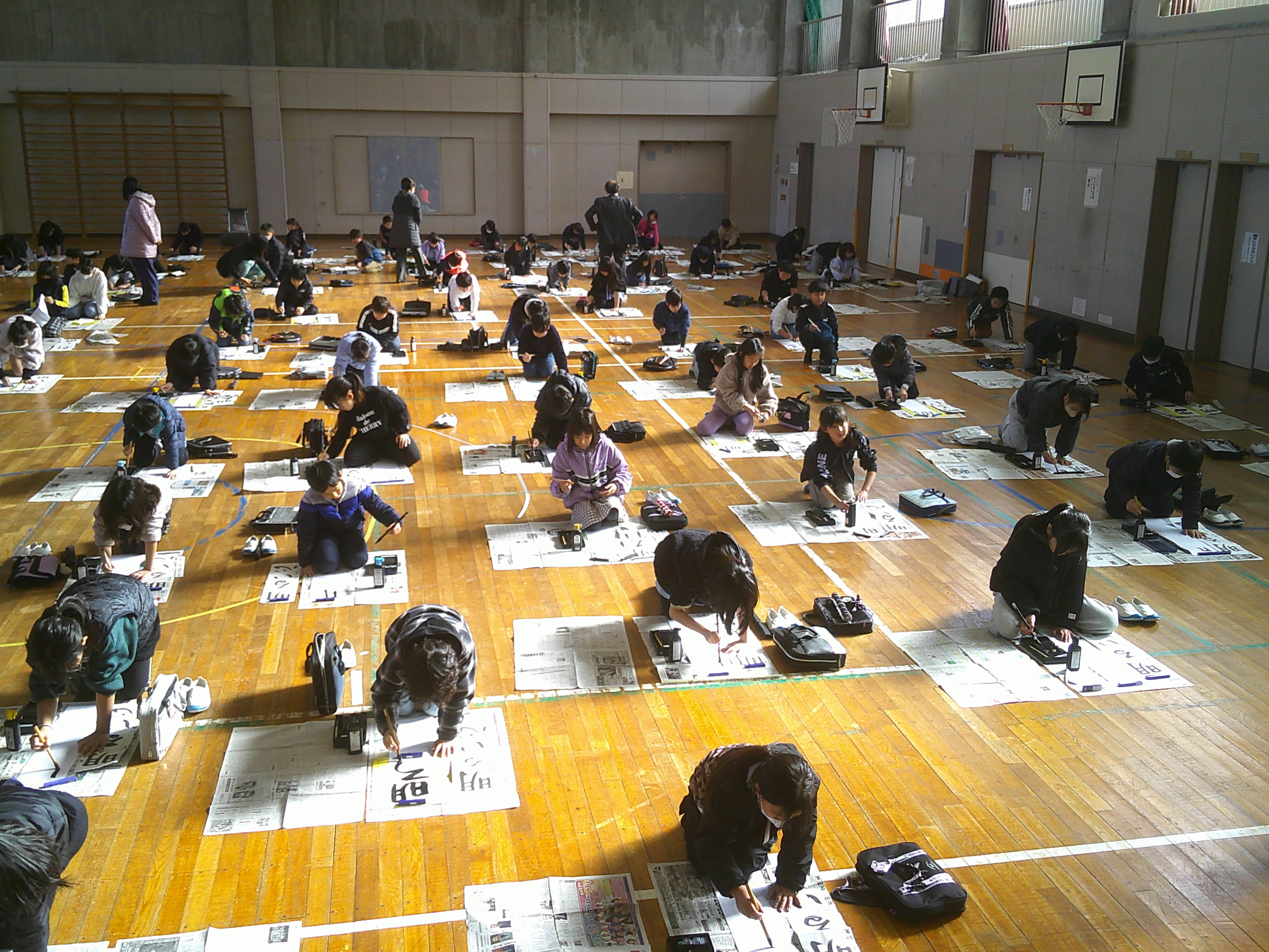 1・2年生は硬筆で、3~6年生は毛筆で書き初めをしました。
