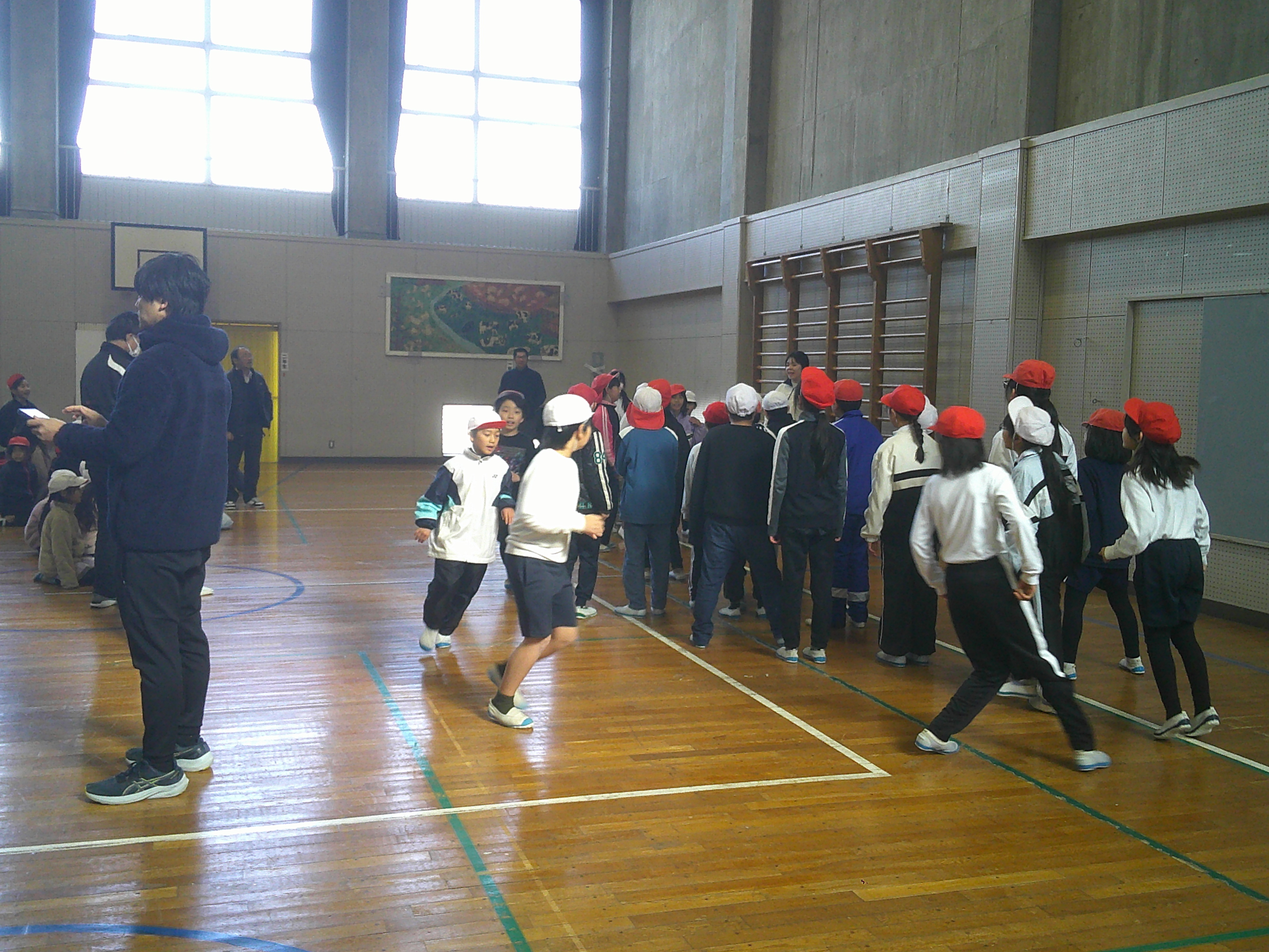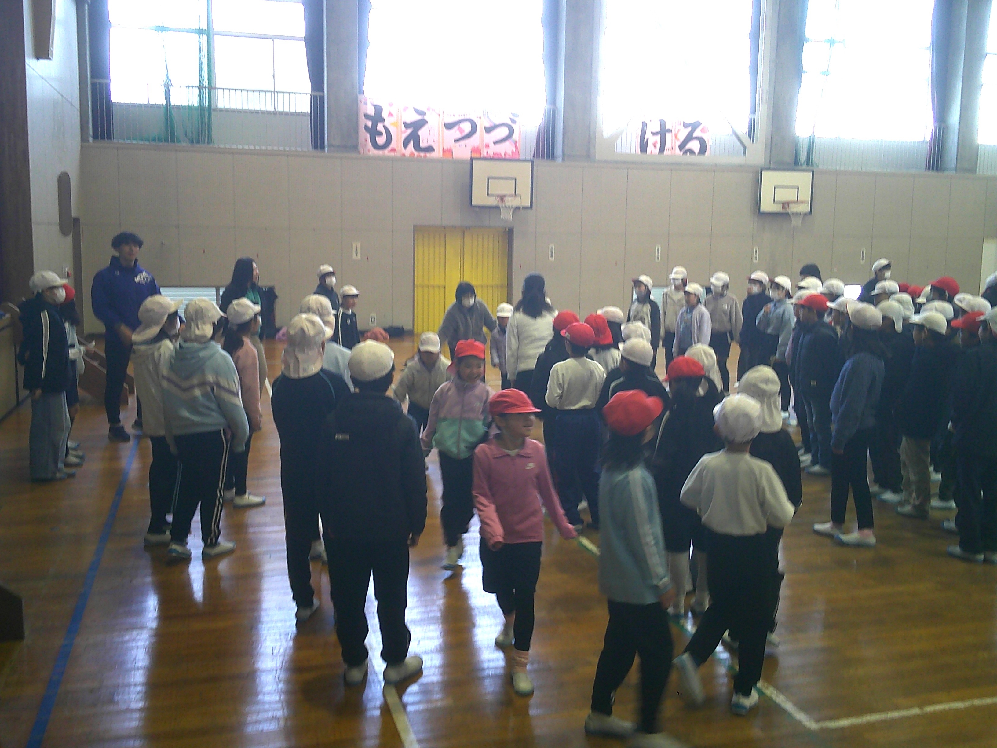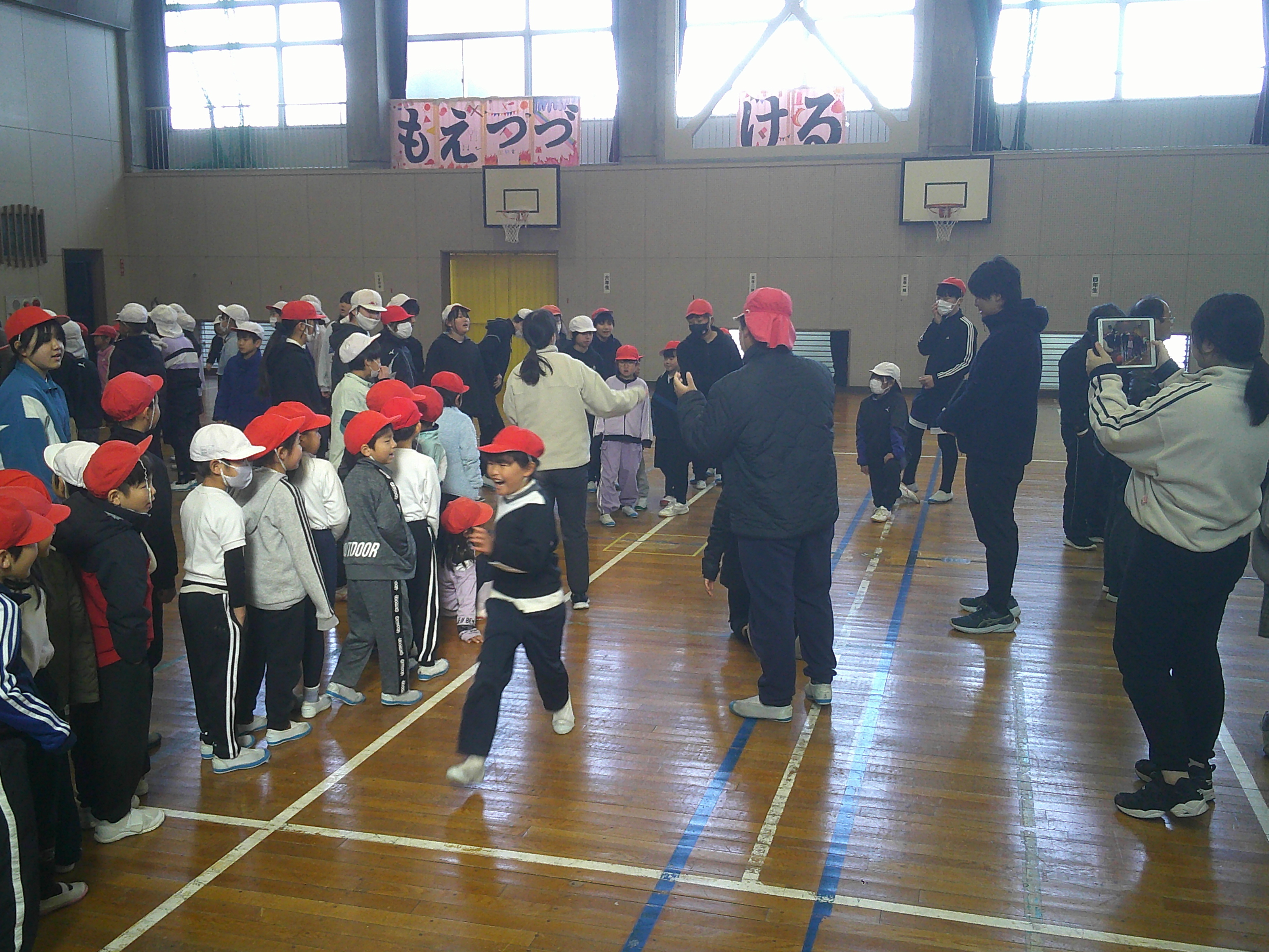 運動委員会主催のチャレンジスポーツinぎふ最終記録会を行いました。それぞれのチームで挑戦する種目を決め、取り組んできた自分たちの最高記録に挑戦しました。普段は、運動場で取り組んでいますが、この日は、グラウンドコンディションが、十分でなかったため、体育館で行いました。最高記録を更新できたチームの児童たちからは、大歓声が上がり、記録更新をたたえるあたたかな拍手で体育館がいっぱいになりました。