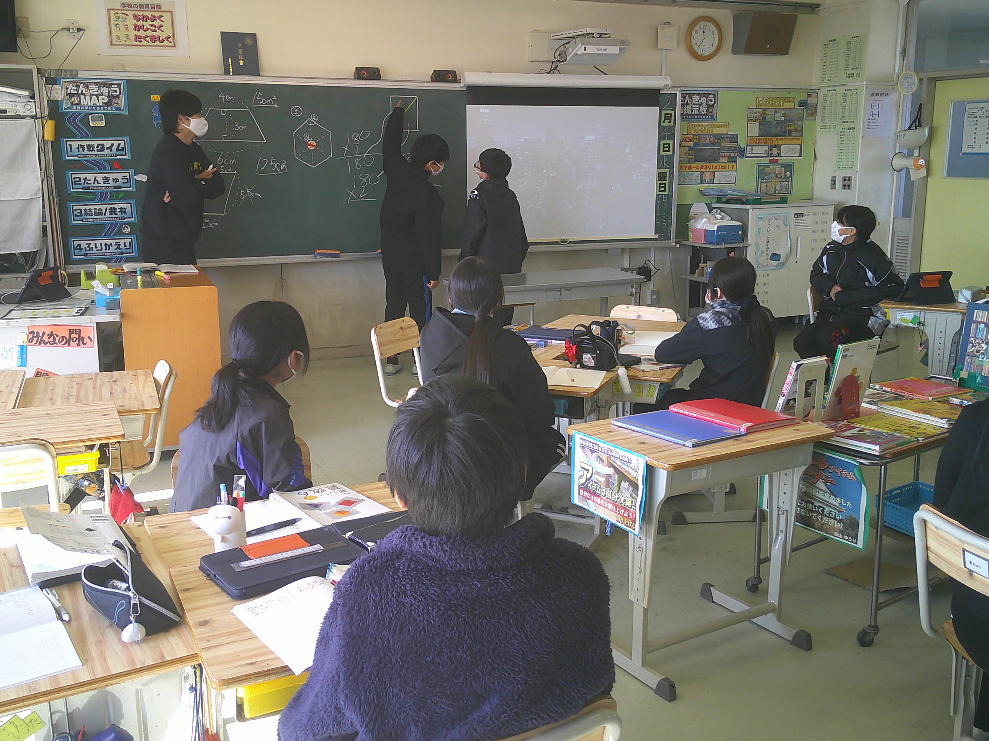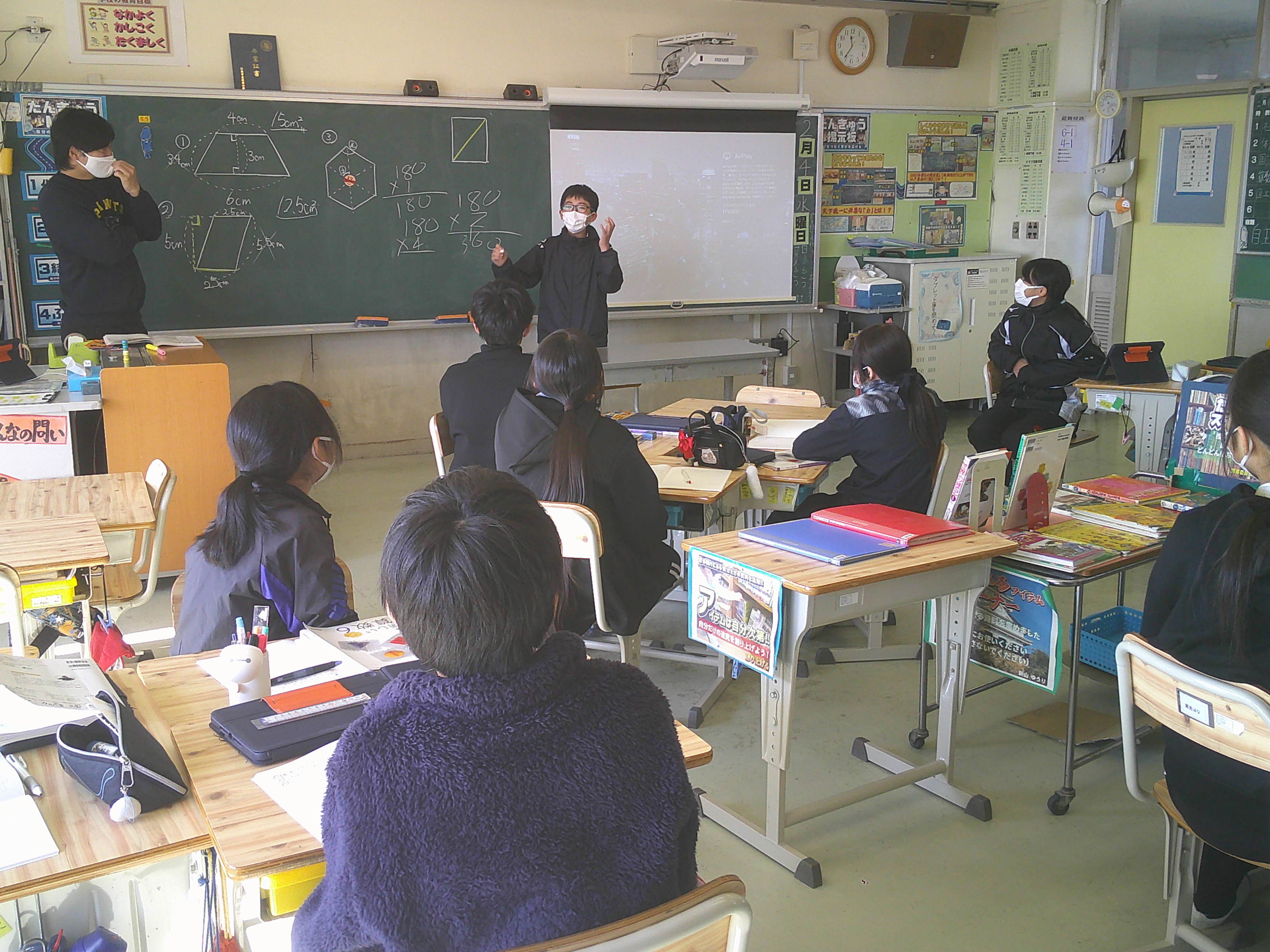 6年生が算数「算数の学習をしあげよう」で、この日は図形の性質についての理解を確かめました。