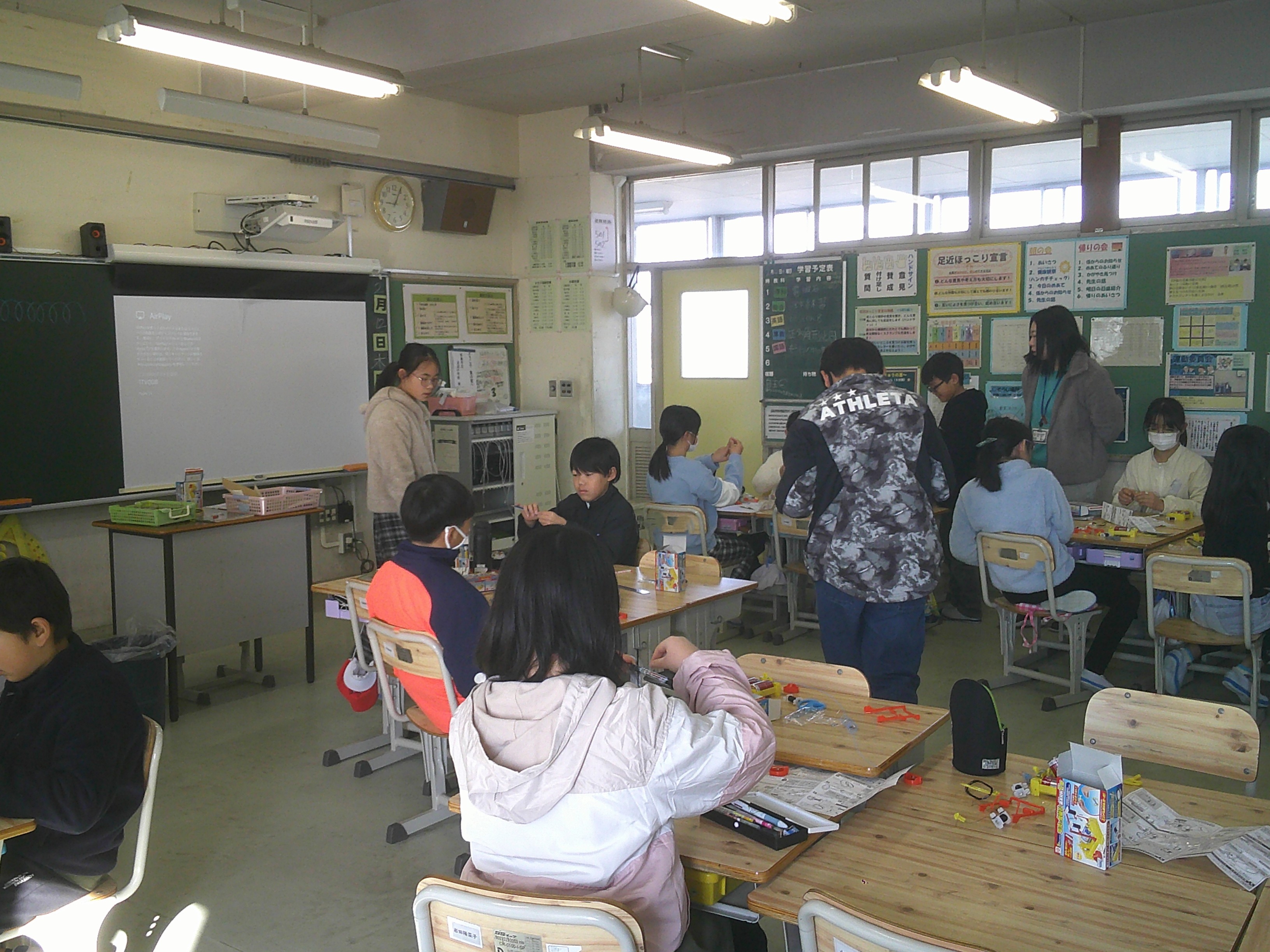 4年生が図画工作「ほって すって 見つけて」、5年2組が理科「電流がうみ出す力」、2年生が算数「長い長さを はかって あらわそう」の学習をそれぞれしました。なかよしタイムは、風もなく、元気に走り回る児童の姿がいっぱいでした。