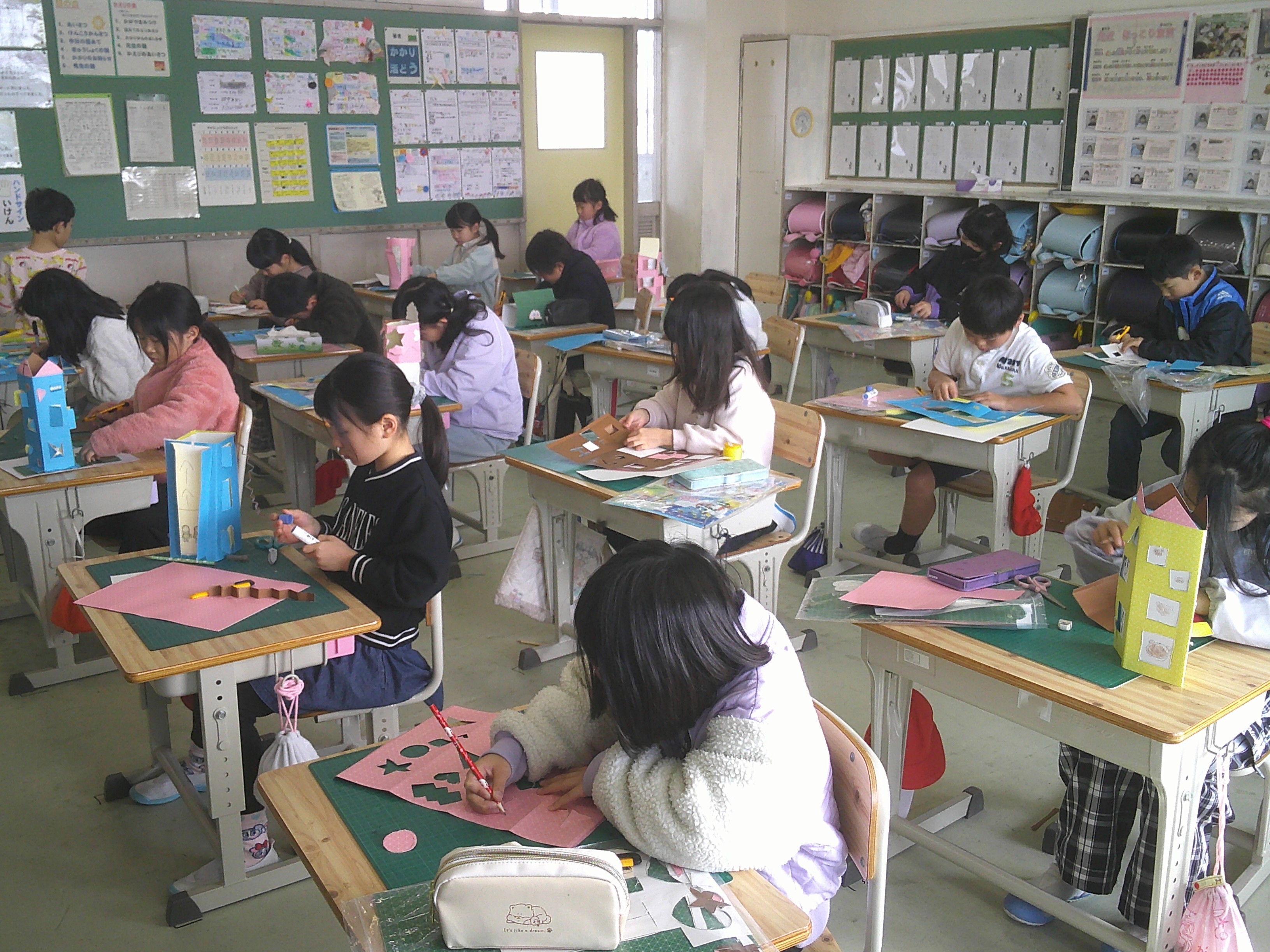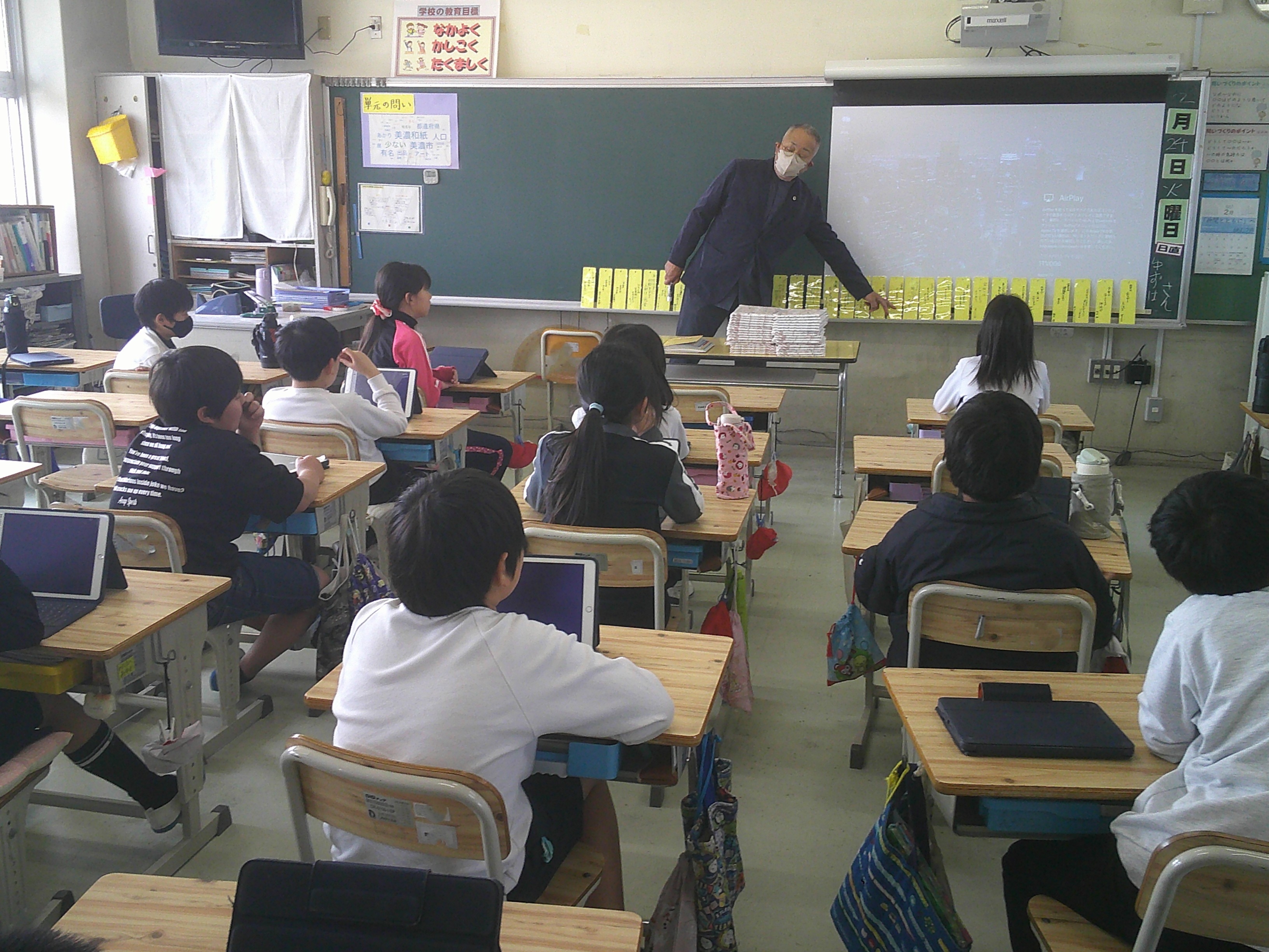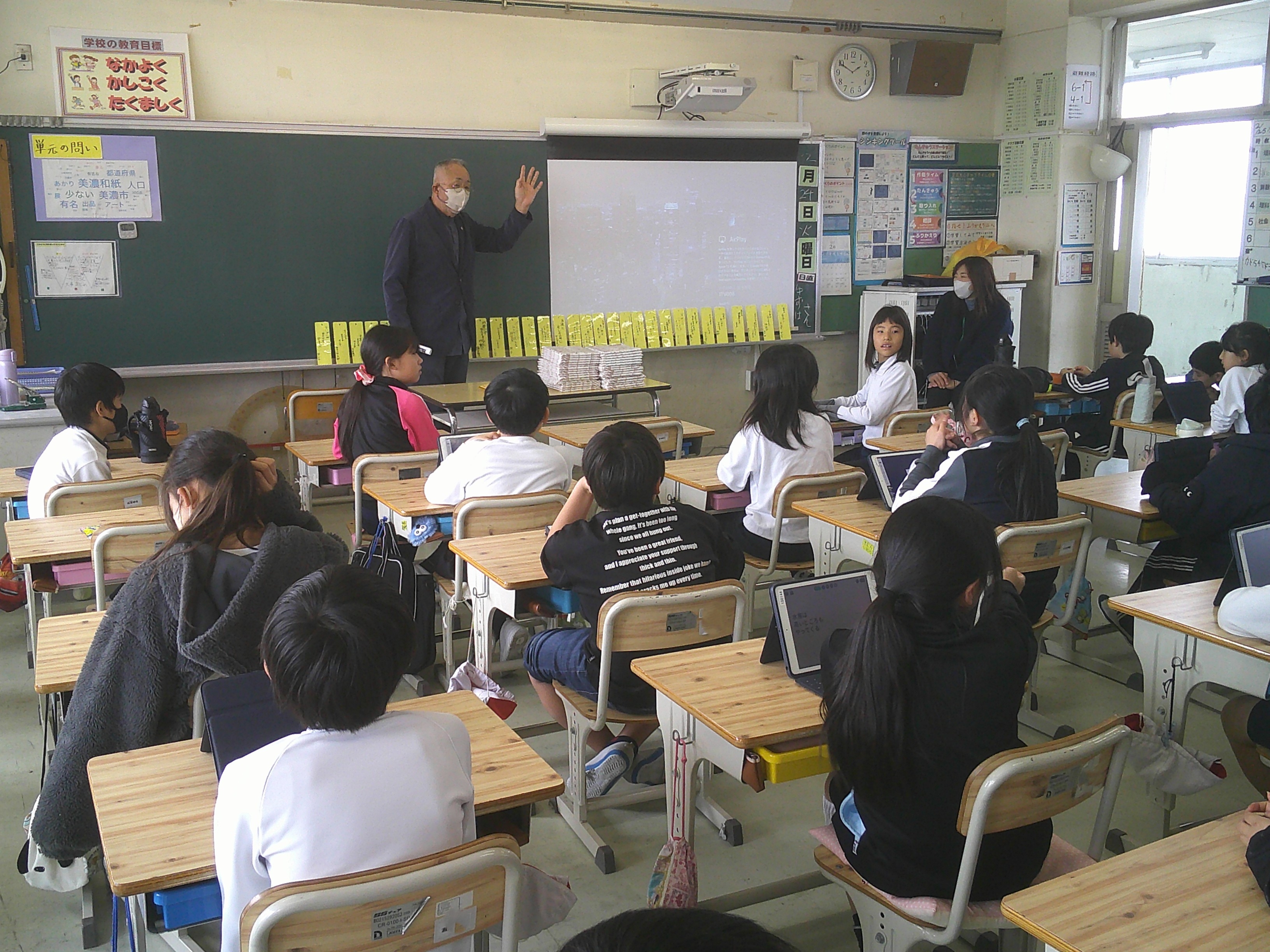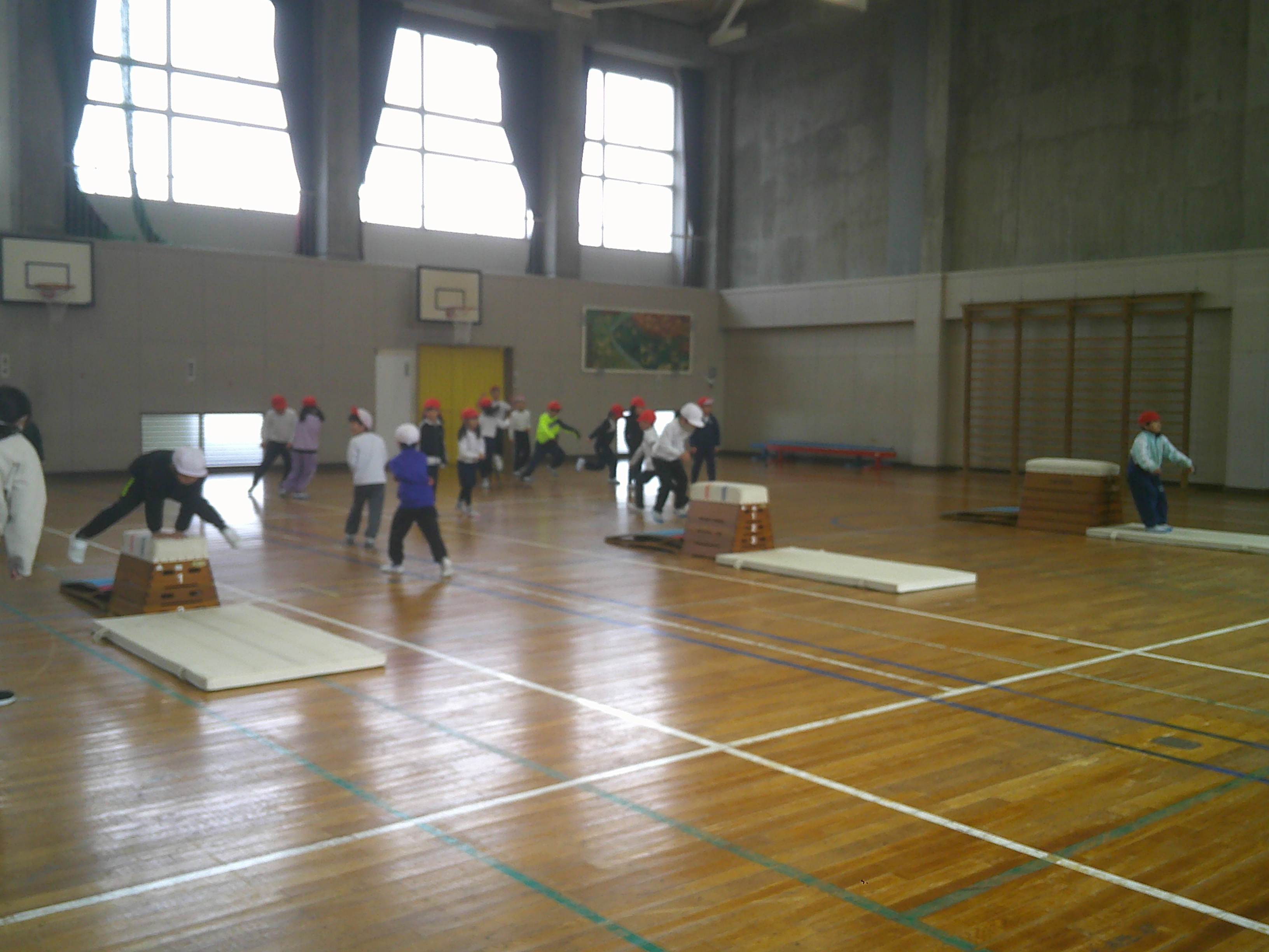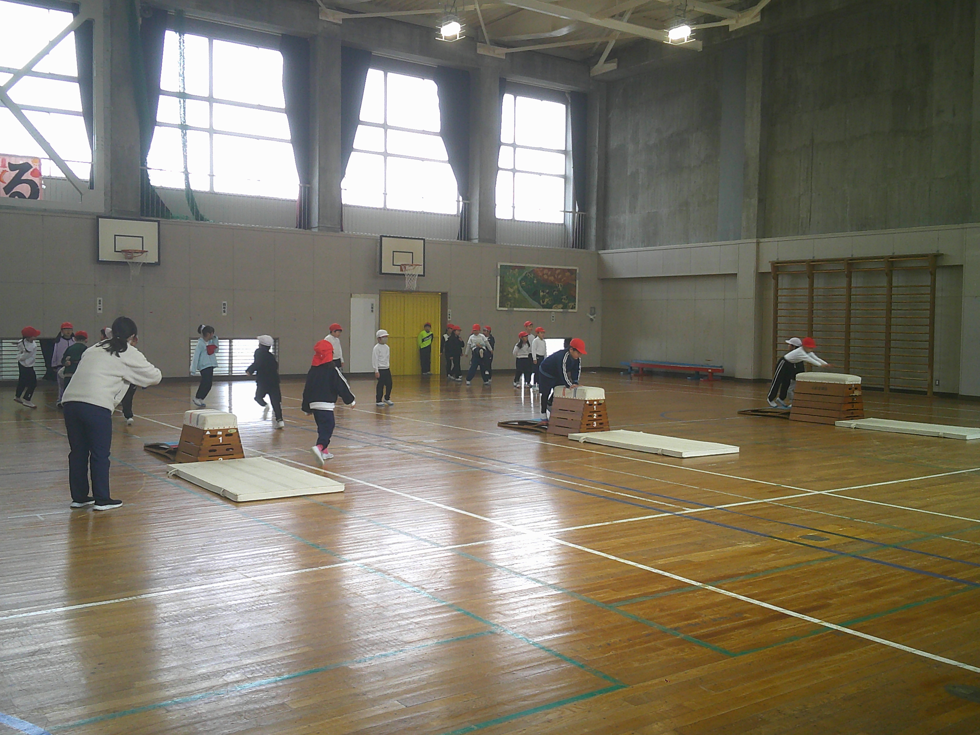 1年生が体育でとび箱あそびをしました。2年生は図画工作「まどをあけたら」の学習でカッターナイフを使った作品づくりをしました。この日の昼休みは、春を感じる日差しで寒くは感じませんでしたが、伊吹山は見えませんでした。4年生が各自がつくった防災川柳(「家具固定 しているだけで 安心だ」等)の振り返りを通して、地域講師の方から改めて防災について学びました。