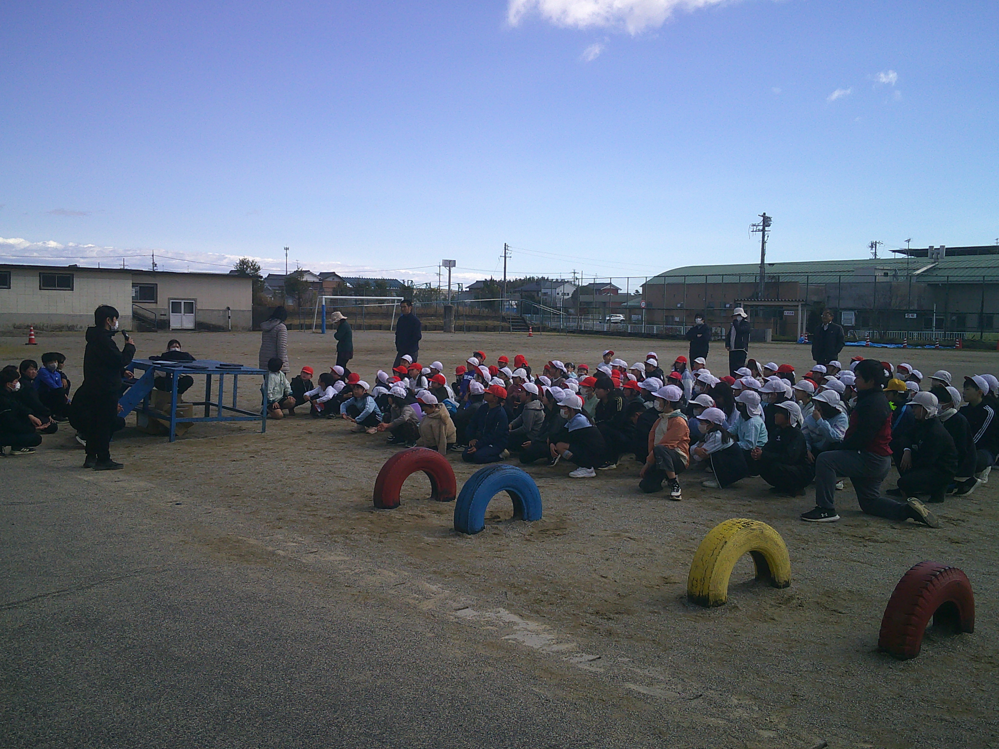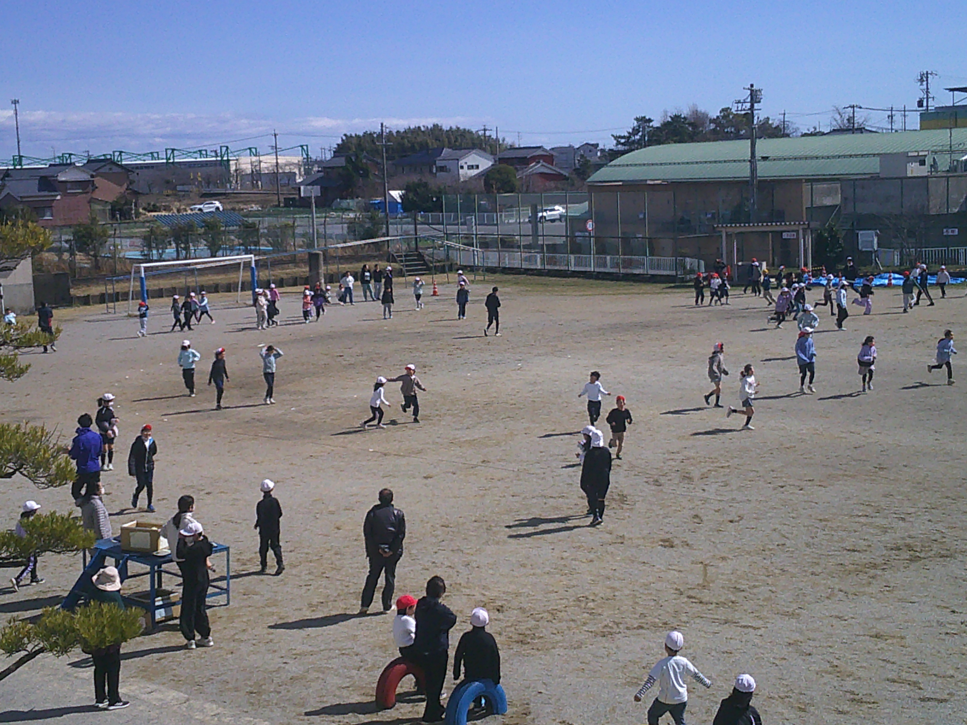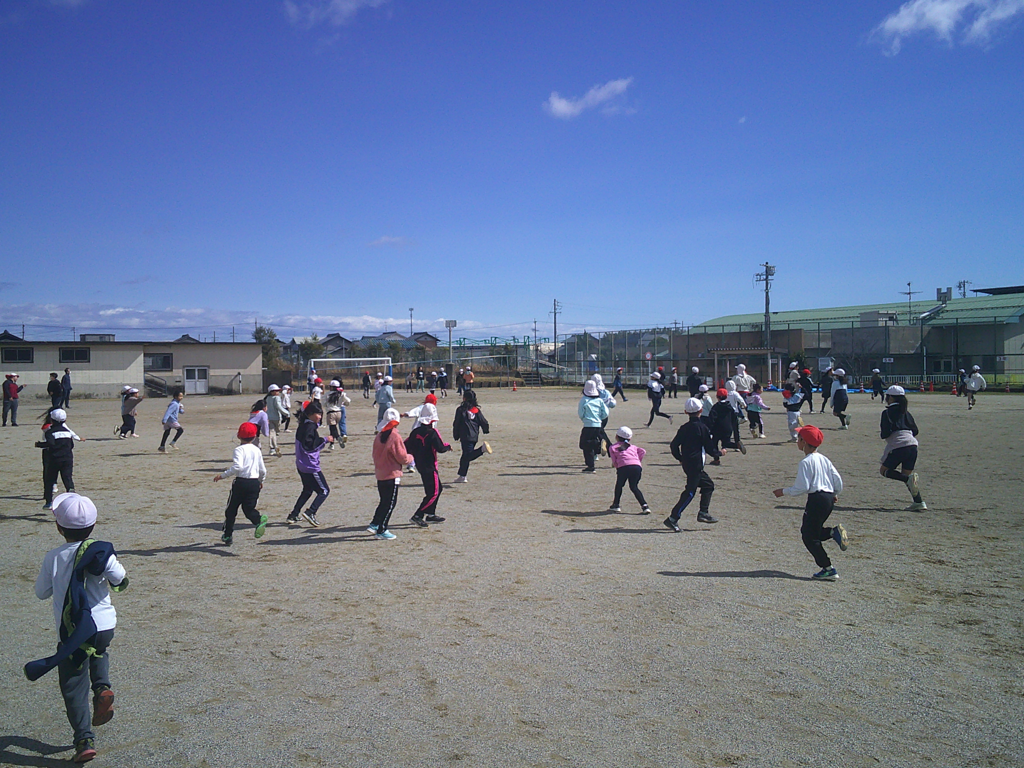 運動委員会が中心となって「逃走中in足近」を行ないました。冷たい風が吹く中でしたが、元気に笑顔で走りまわる児童で運動場がいっぱいでした。