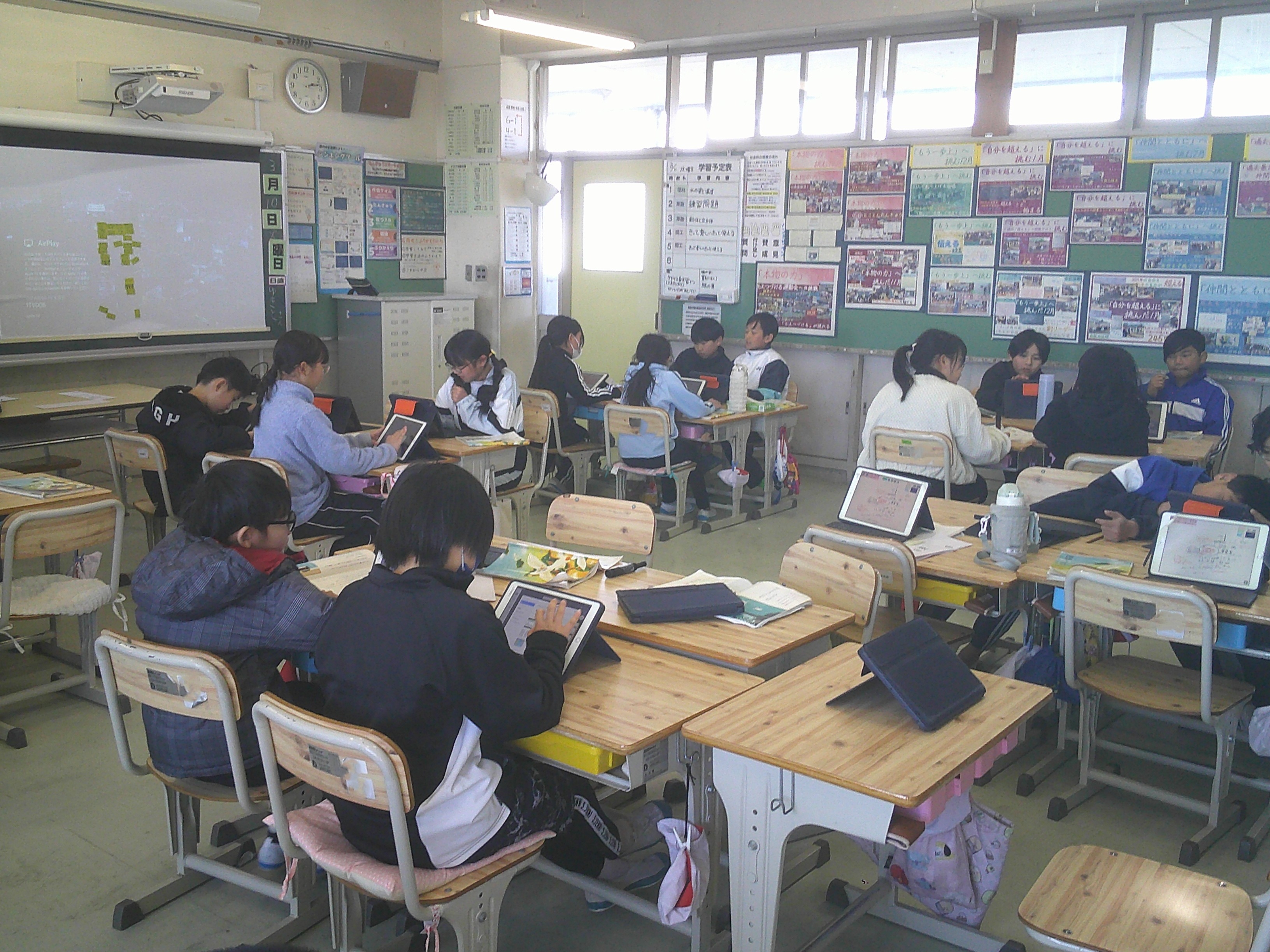 4年生が国語「スワンレイクのほとりで」で、読んで考えたことを仲間に伝え合う学習をしています。
