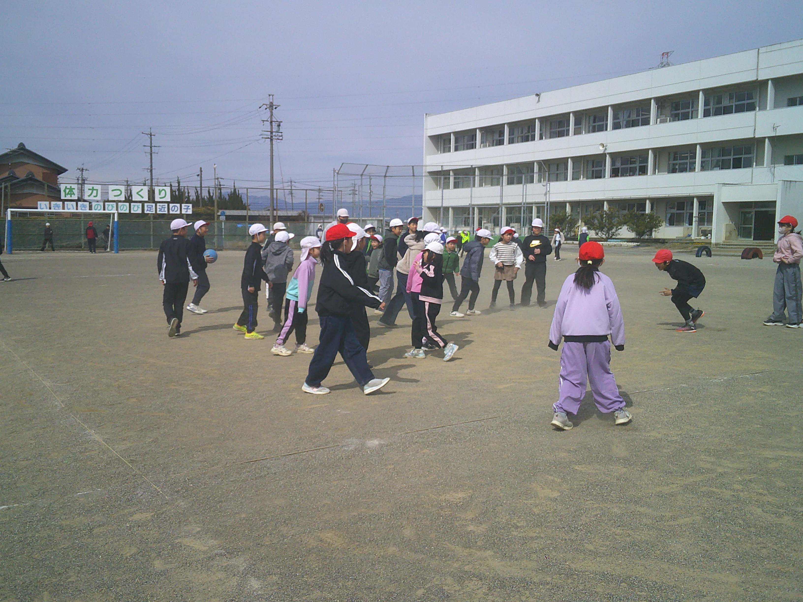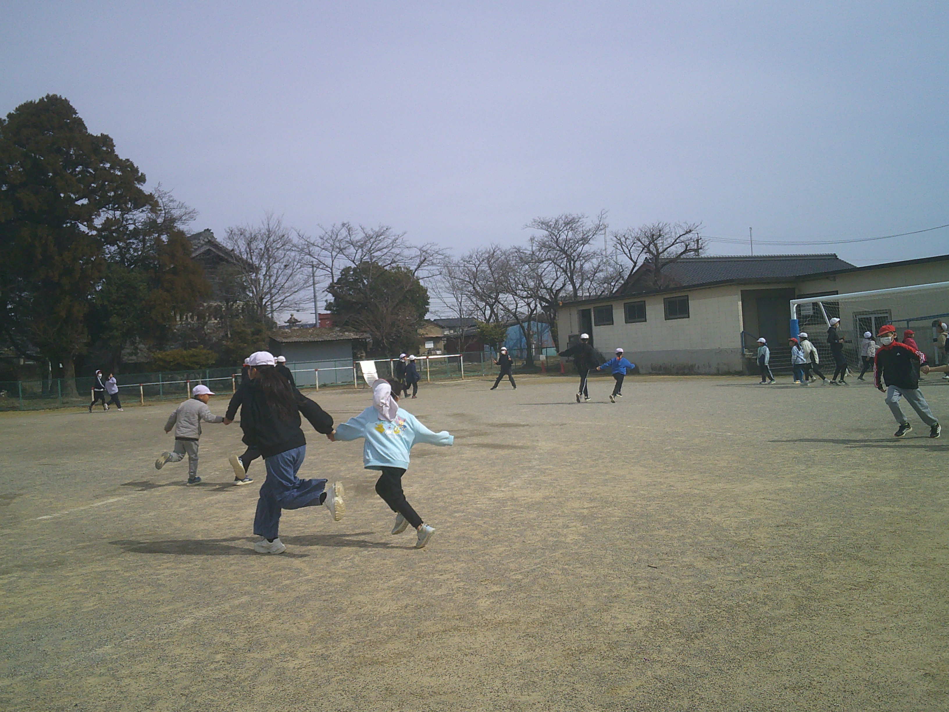 なかよしタイムに、たてわり遊びをしました。少し寒さを感じる中でしたが、児童たちは、元気いっぱい楽しそうに運動場を駆け回っていました。