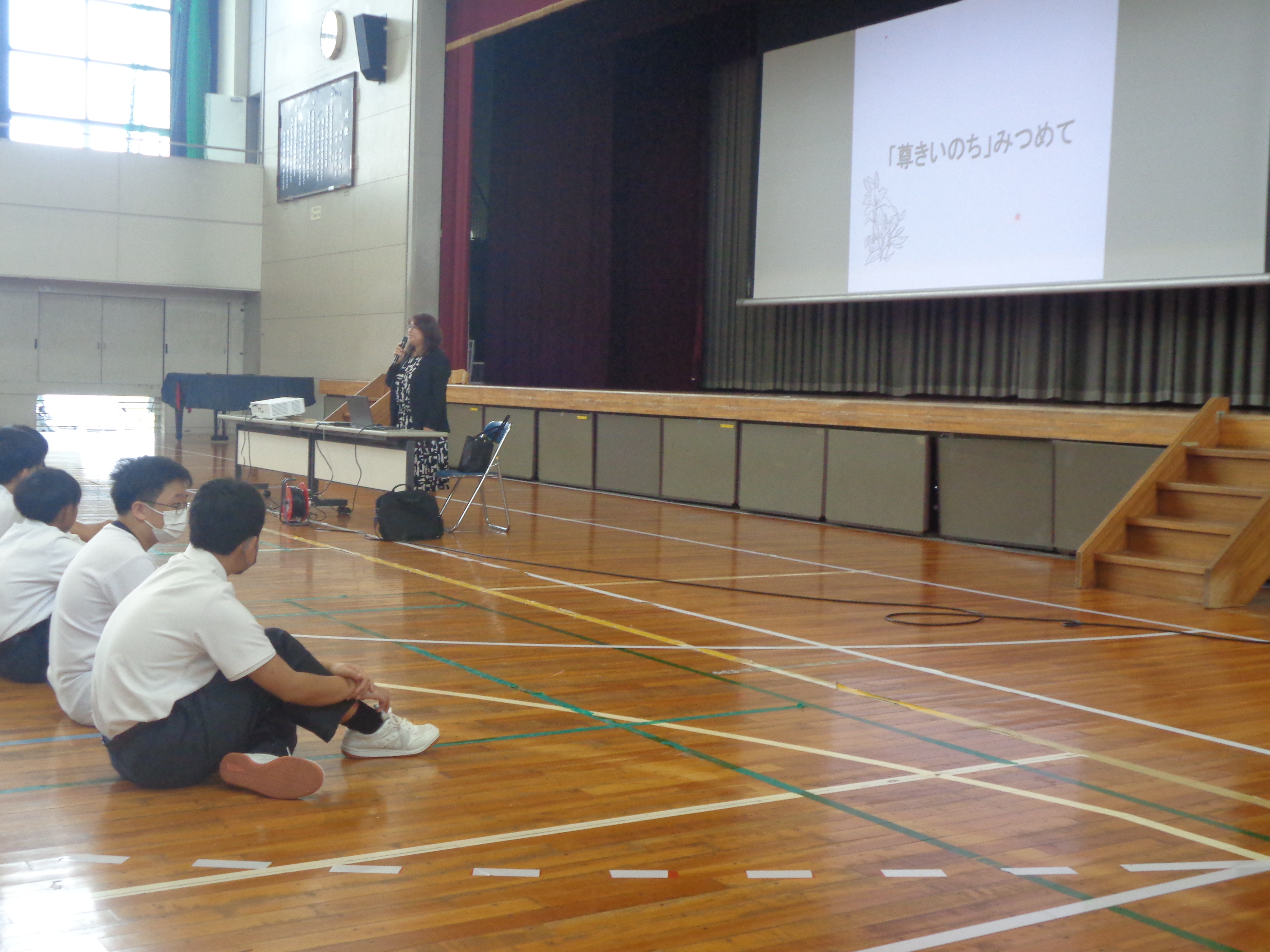 当時、中1だったご自分のお子さんを不慮の交通事故で亡くされるという、想像を絶する悲しみを経験されました。「あなたは 考えたことがありますか?命の大切さ、自分で自分を守るということを」このメッセージは、絶対に忘れません。命を大切にできる羽島中生にしていきます。ありがとうございました。