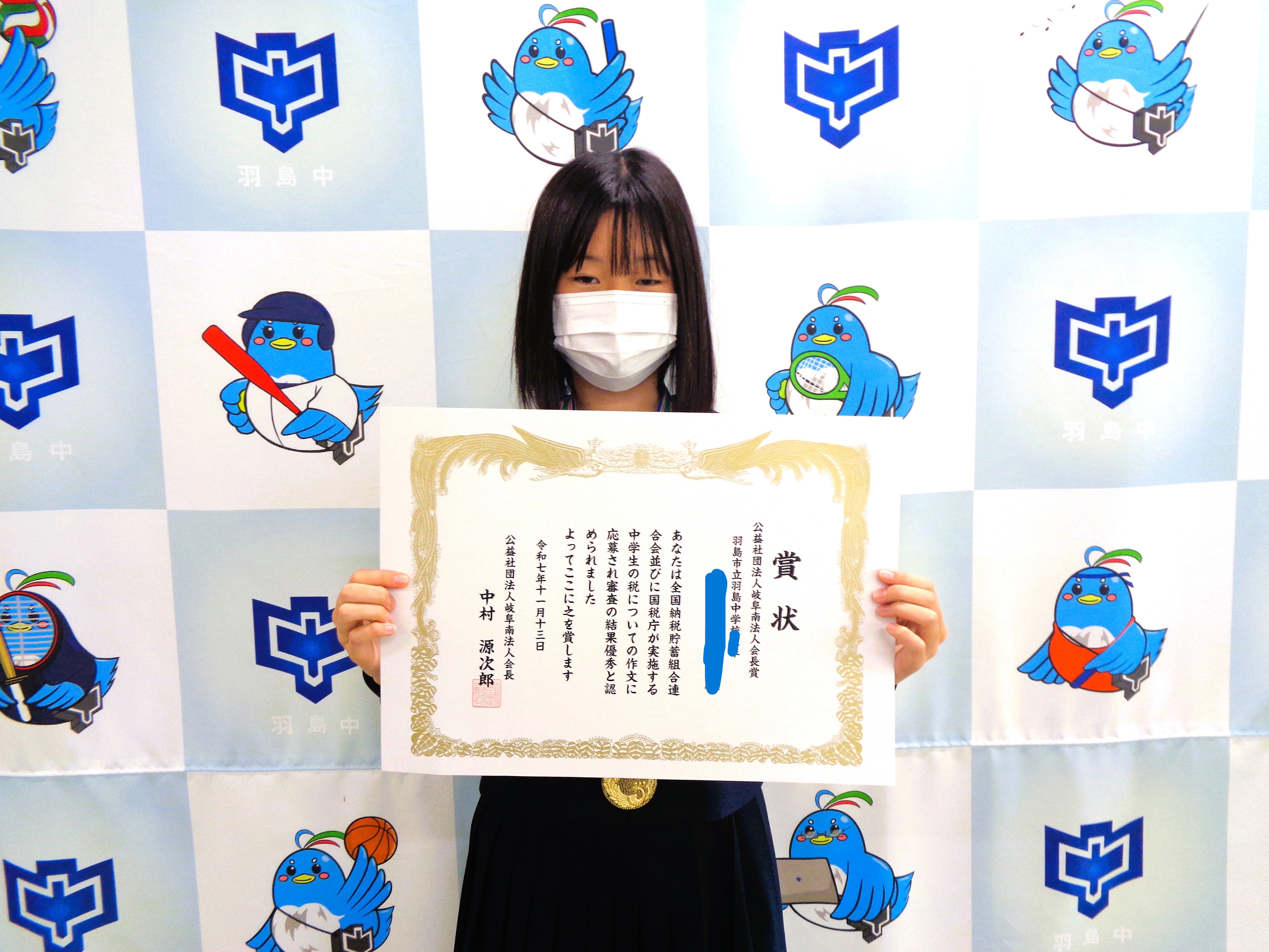 税の作文 岐阜南法人会 会長賞受賞 おめでとうございます
