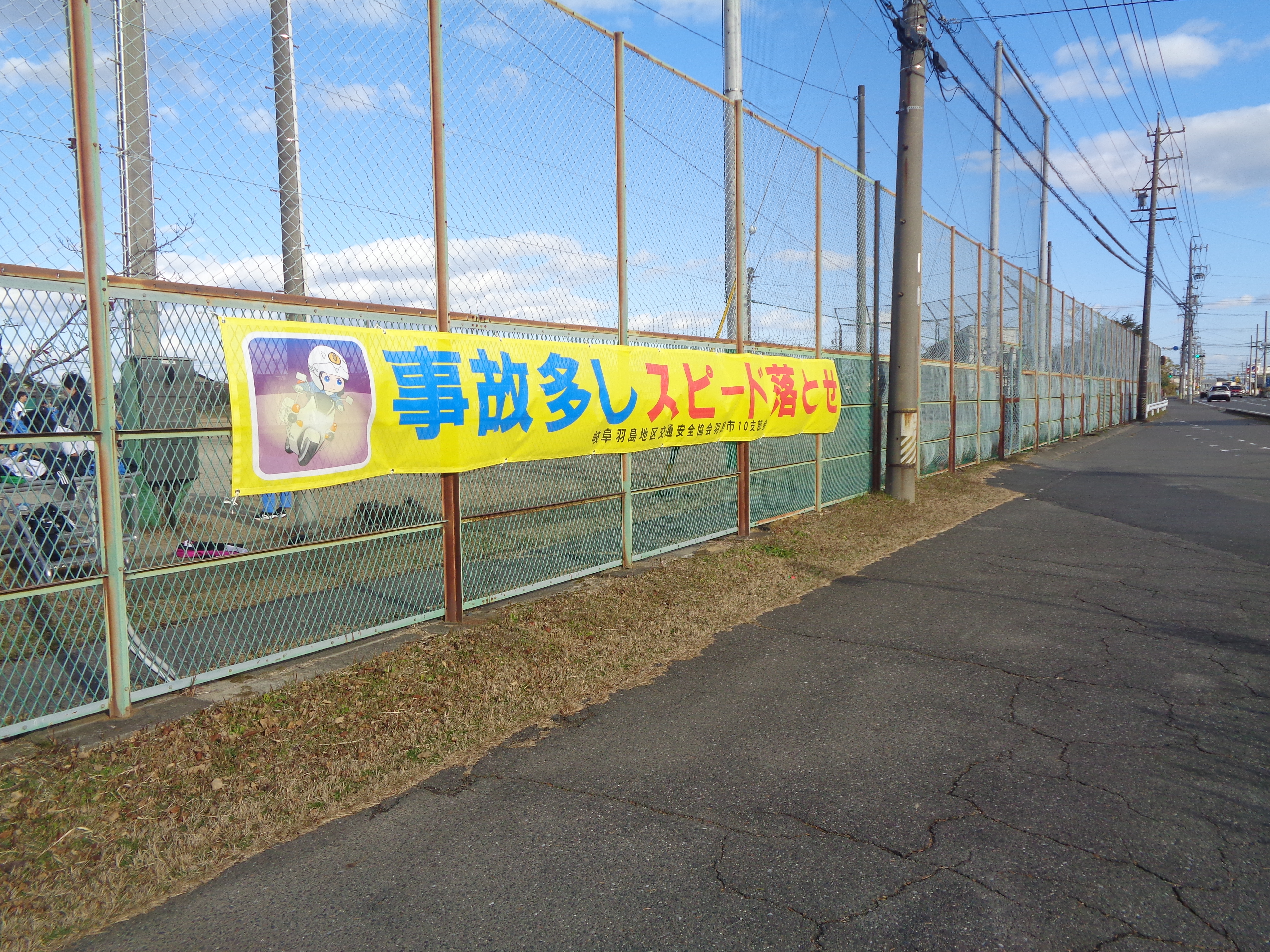 羽島地区交通安全協会よりいただいた横断幕 生徒も交通安全について意識を高めたい