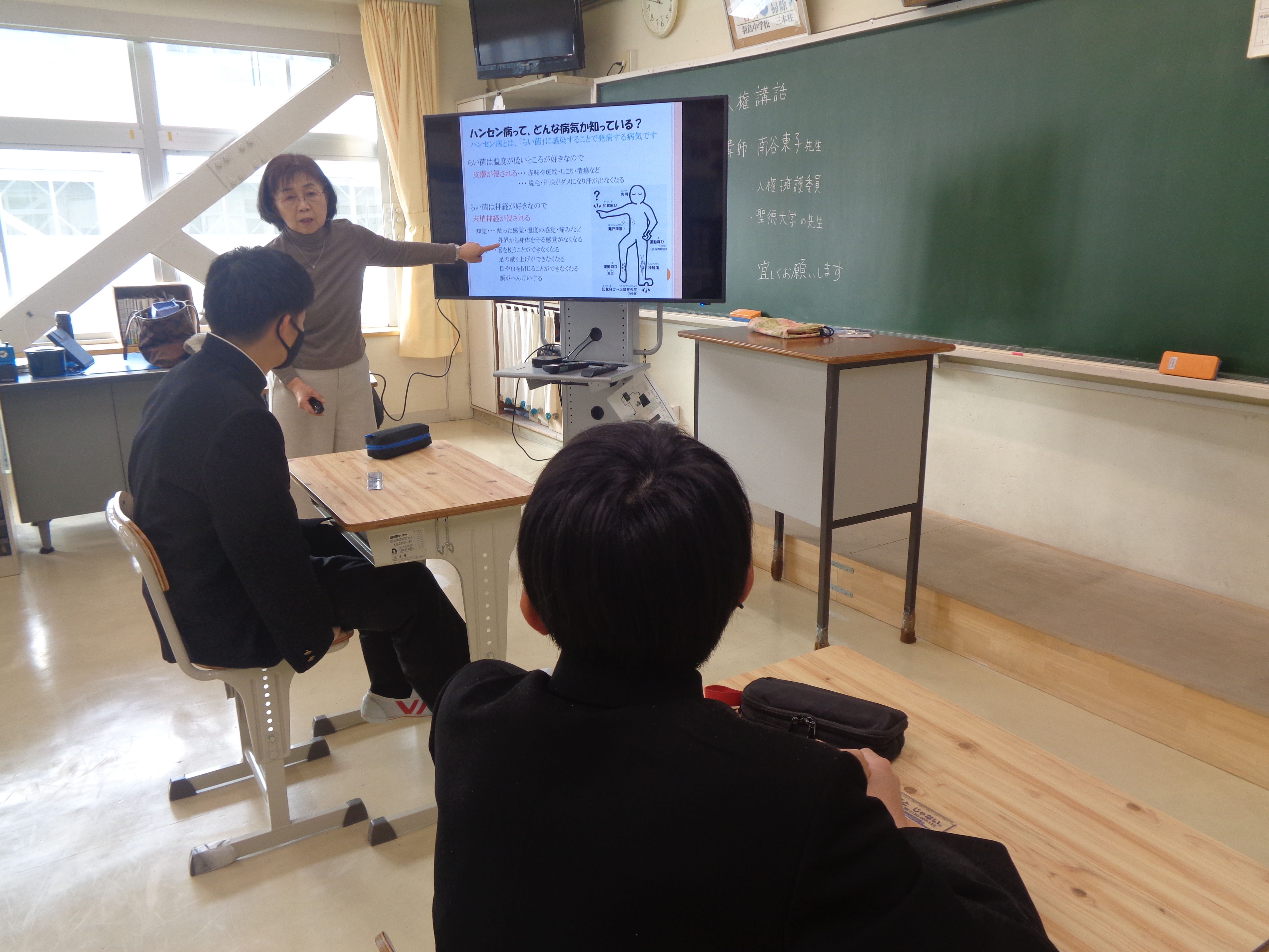 人権擁護委員の南谷東子先生から、ハンセン病の歴史を通して人権教育をしていただきました。
