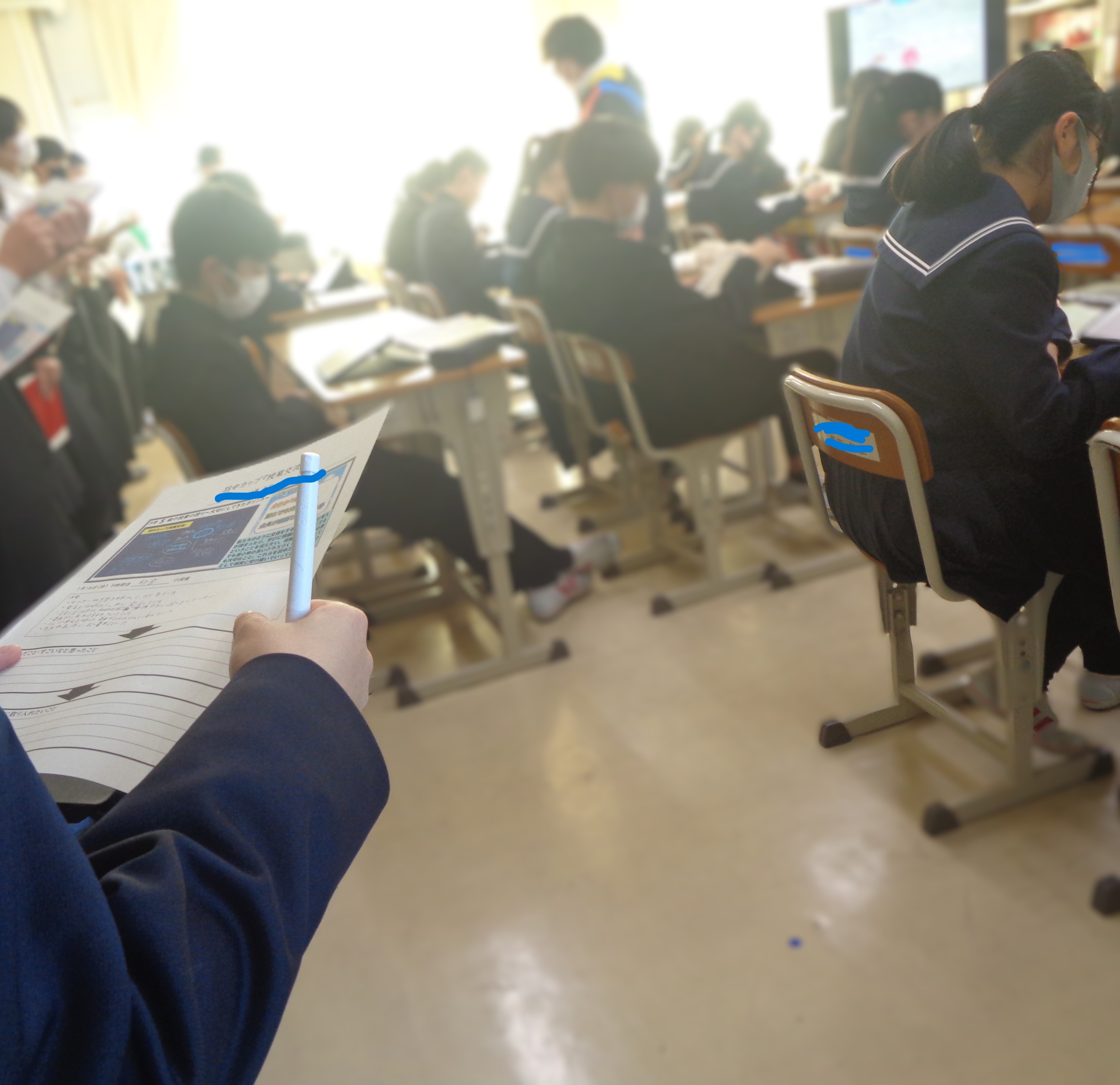 学習委員会と学習指導部の先生方との考案で、下級生が3年生の授業参観を行う企画を行いました。