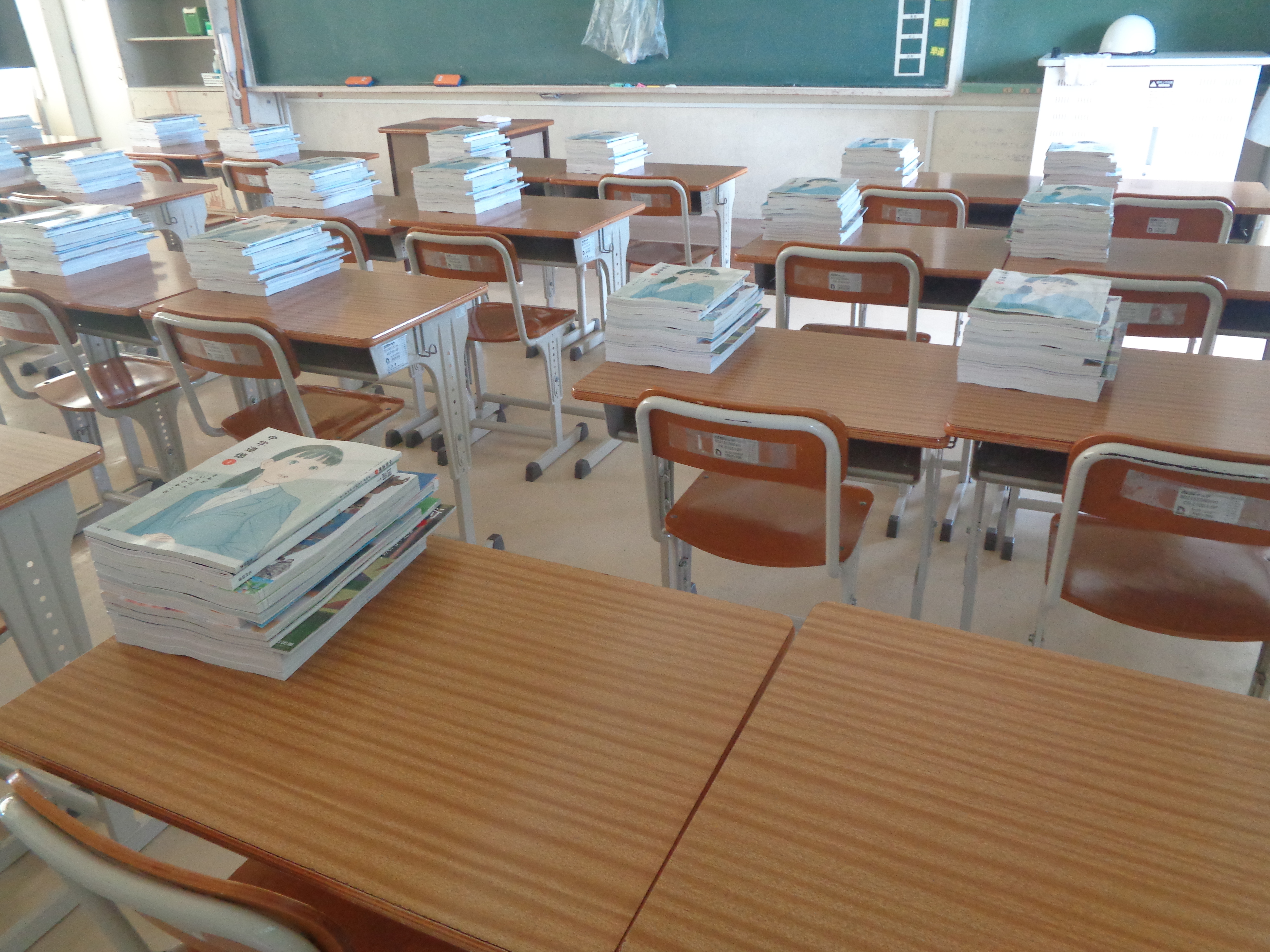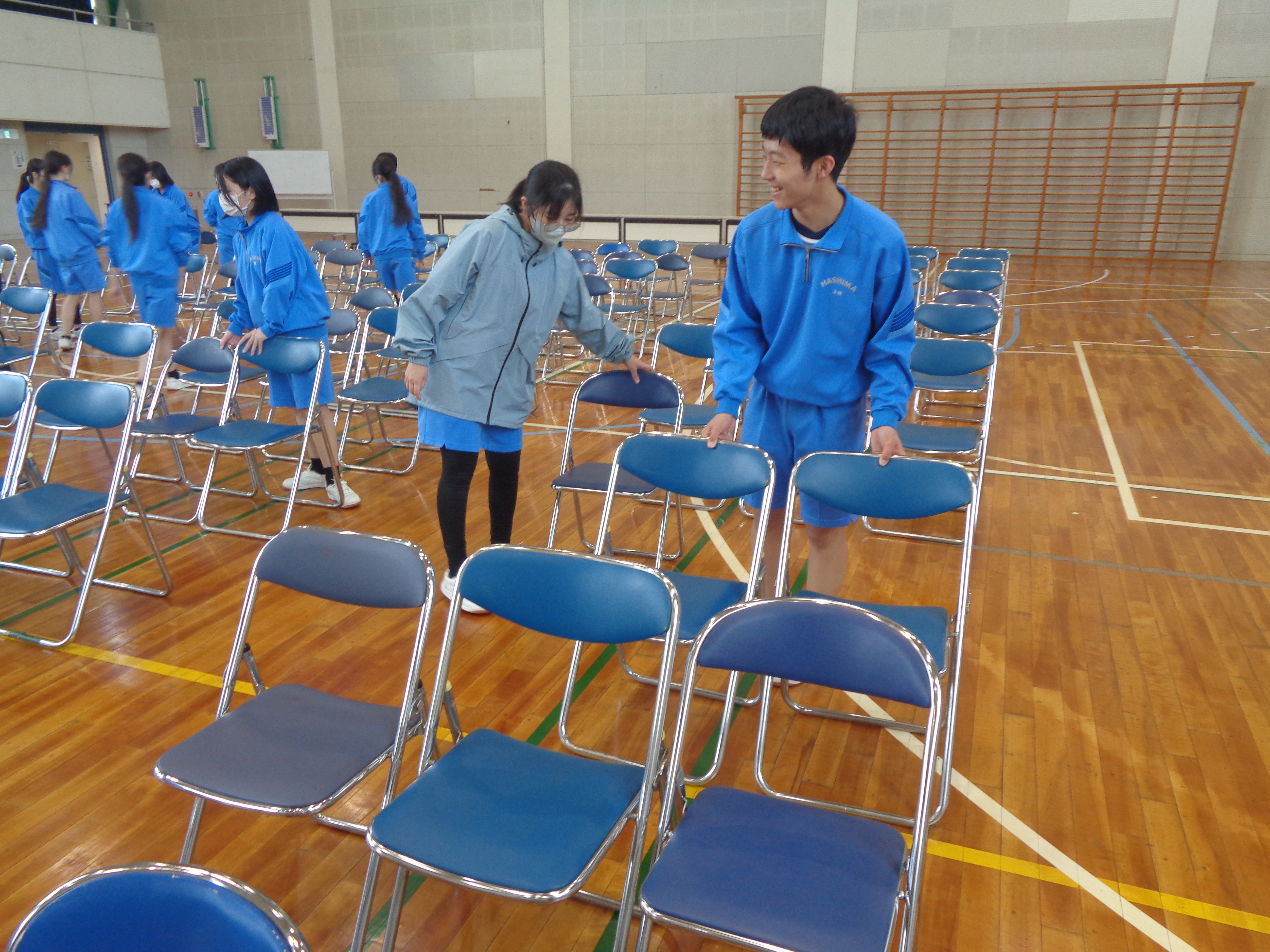 新3年生が来校して、明日の始業式・入学式の準備をしてくれました。