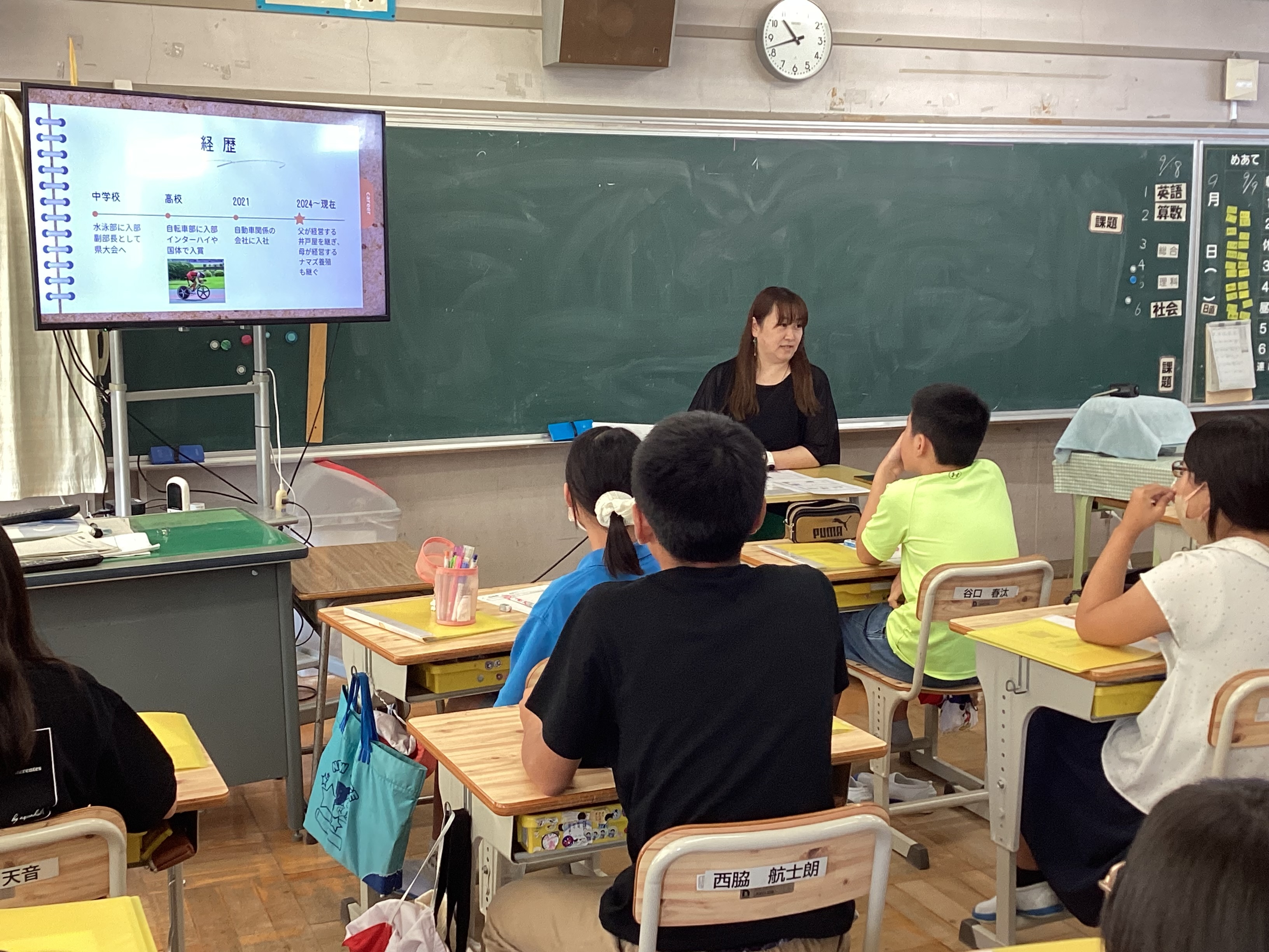 9月、10月、6年生が「志」授業を実施しました。羽島地域で活躍する方々をお招きして、6年生の総合的な学習で学びました。ナマズ養殖の南谷さん、イラストレーターの広東もなさん、JR東海の北野さん、日東工業の松尾さん、天野企画の天野さん...。子どもたちは、興味をもって学習することができました。大人になって仕事に就くまでには、いろいろな道があること、自分の好きなことや興味があることを追求することの大切さを学びました。また、身近な地域の羽島市内だけでなく岐阜県や全国で活躍する方々がみえることを知り、自分にもできるのではないか、将来に向けていろいろなことを学んでいきたいと感じたようです。