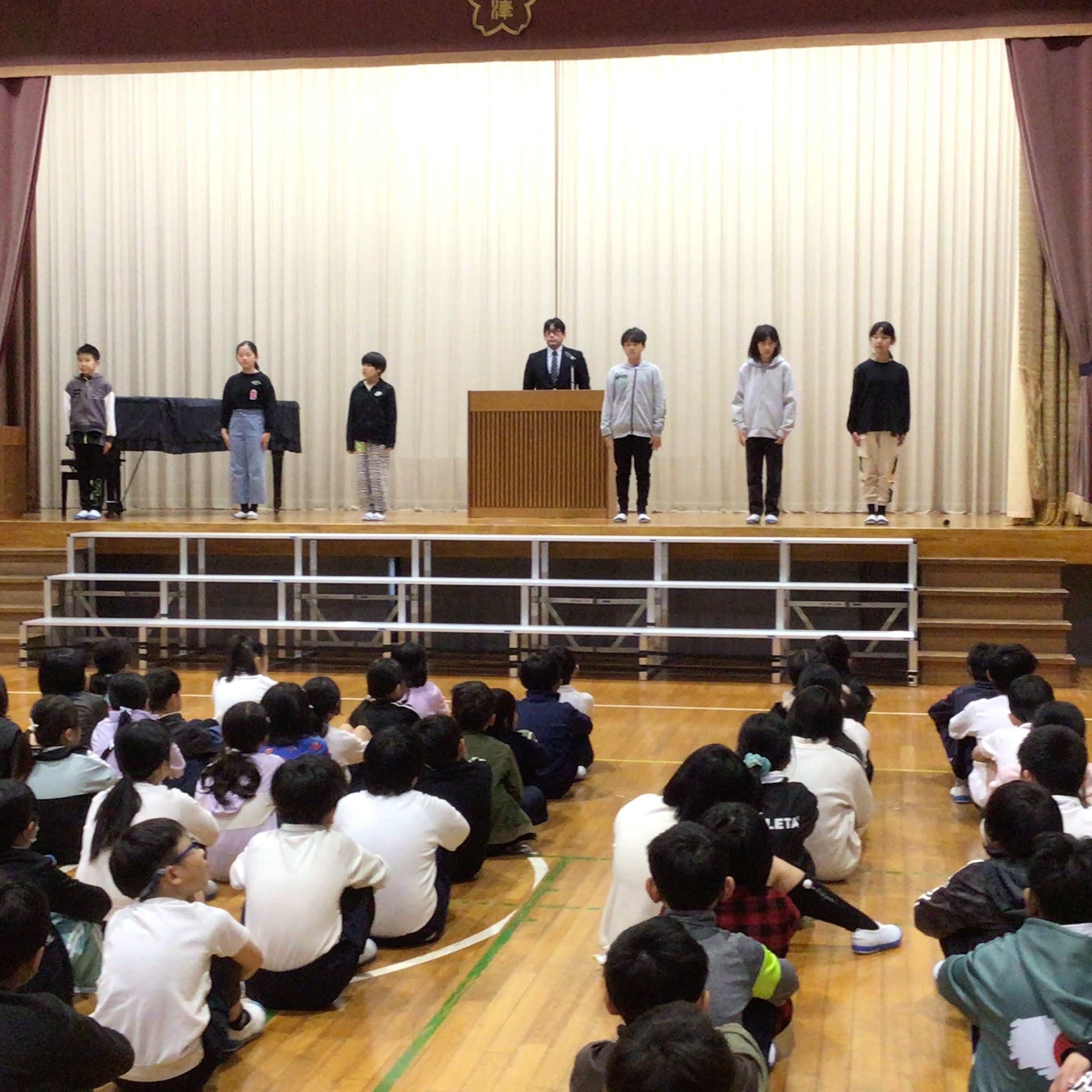 4月10日(金)、児童会認証式を行いました。計画委員長・堀田さん、美化環境委員長・渡辺さん、保健給食委員長・浅野(花)さん、図書委員長・森さん、体育委員長・淺野さん、放送広報委員長・後藤さんが、児童会活動の目標や目的を話しました。また、各学年の学級委員の紹介をしました。「笑顔いっぱい、輝きいっぱい 堀津小」を目指して頑張ります。今年の児童会活動への期待感がいっぱいです。