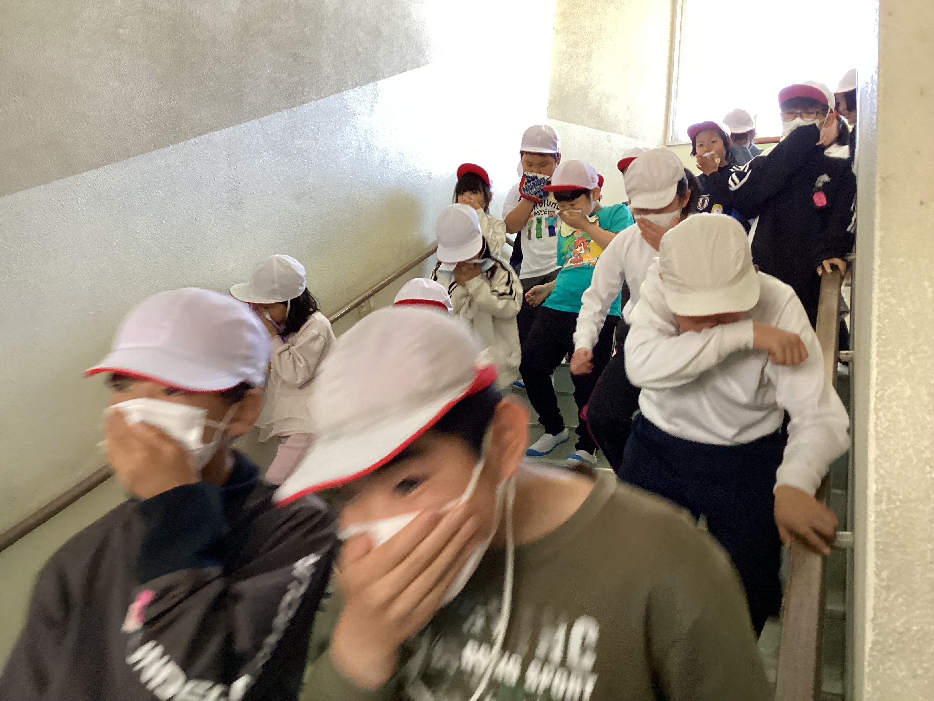 4月16日(木)、全校で第1回「命を守る訓練」を実施しました。新しい学級から避難経路を確認してから、先生の指示を聞いて、落ち着いて避難することができました。怪我がないように、まず頭を守ること、火事の場合は煙を吸わないようにすること等、緊張しながらも全員が安全に訓練できました。命を守ることを第一に考え、今後、さまざまな場面を想定して訓練をしていきます。