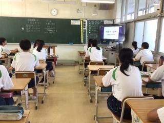 不審者に扮した警察官の方2名が教室に侵入し、対応を実践しました。