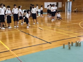 モルック棒を投げる、スキットルまで歩く、倒れたスキットルを立てる、
