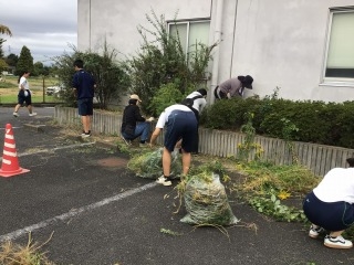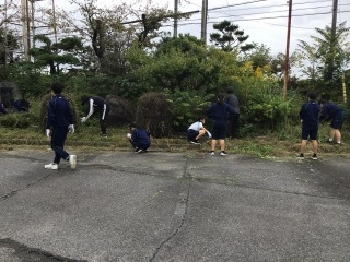 中島中クリーン作戦で、草刈りや側溝土砂取り、枝の選定などを