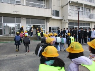 中学生が卒業した小学校に行き、小学生、中学生、
